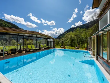Im Genusshotel Almrausch finden Sie einen ganzjährig nutzbaren Outdoorpool. Dieser ist im Winter beheizt und überdacht. Sobald es die Temperaturen zulassen wird im Sommer das Dach beiseite geschoben und Sie können unter freien Himmel schwimmen. Genießen Sie in Ihrem Hotel in Bad Kleinkirchheim bei wohligen 29° Grad Wassertemperatur die Massagedüsen, Nackenbrausen oder die Gegenstromanlage sowie einen herrlichen Blick auf die Kärntner Nockberge.
