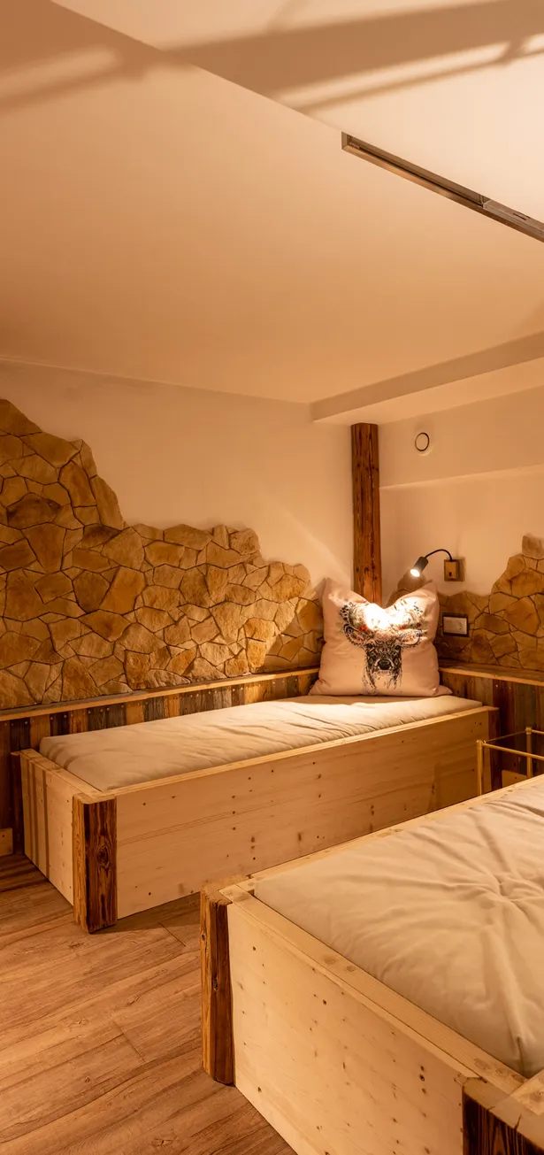 - "Nockstadl": Der Ruheraum "Nockstadl" beim Saunabereich bietet mit seinen hausgemachten Holzbetten und der gemütlichen Atmosphäre einen idealen Rückzugsort zur tiefen Entspannung.