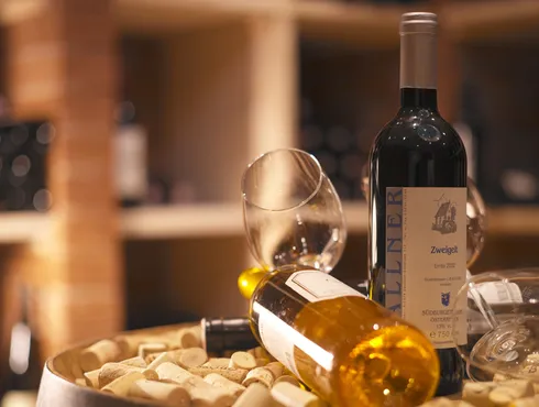 Wine accompaniment? Directly from our own wine cellar and also from home! The finest wines from all over the world as well as fine wines from the Lavant Valley next door are waiting for you! Water, beer and juices are also sourced from our regional suppliers, so many a glass invites you to take a wine trip through the region.