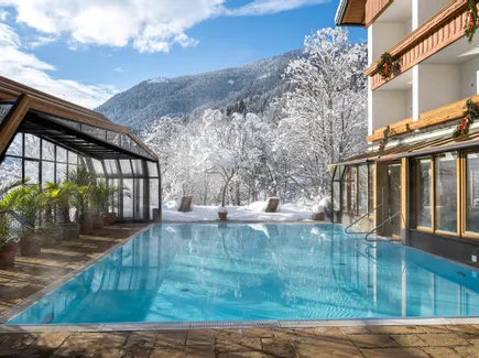 At the Genusshotel Almrausch you will find an outdoor pool that can be used all year round. This is heated and covered in winter. As soon as the temperatures allow, the roof is pushed aside in summer and you can swim under the open sky. Enjoy the massage jets, neck jets or the counter-current system at your hotel in Bad Kleinkirchheim with a pleasant 29° C water temperature and a wonderful view of the Carinthian Nockberge mountains.