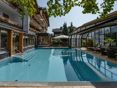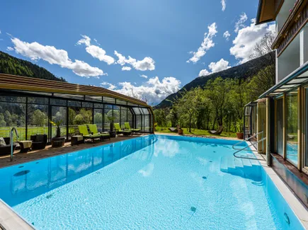 All'Hotel Almrausch troverai una piscina esterna utilizzabile tutto l'anno. È riscaldata e coperta in inverno. Appena le temperature lo permettono, il tetto viene rimosso in estate e puoi nuotare sotto il cielo aperto. Goditi i getti massaggianti, i getti cervicali o il sistema di nuoto controcorrente nel tuo hotel a Bad Kleinkirchheim con una piacevole temperatura dell'acqua di 29°C e una vista meravigliosa sui monti Nockberge della Carinzia.