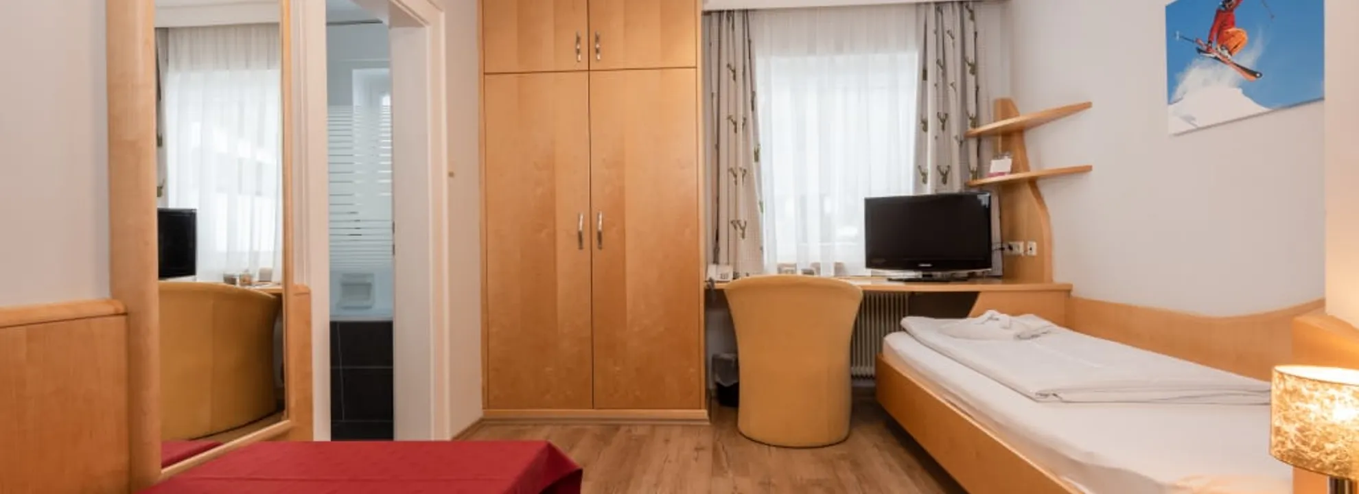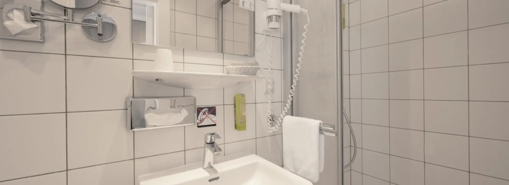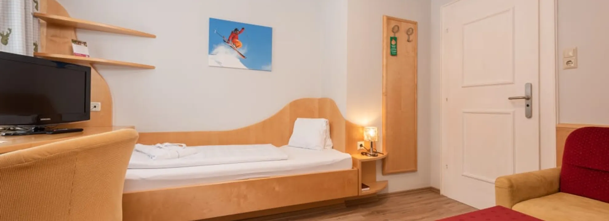 Entspannen Sie in unserem gemütlichen Einzelzimmer mit Dusche oder Badewanne. Eine kuschelige Wellness-Tasche mit flauschigem Bademantel und weichen Handtüchern erwartet Sie bereits – perfekt für entspannende Stunden in unserer Wellness-Oase.