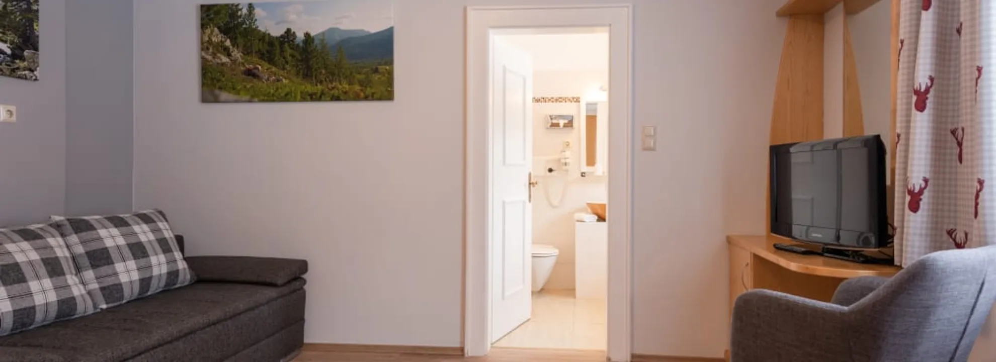 Freuen Sie sich auf einen herrlichen Blick auf die umliegende Berglandschaft und lassen Sie sich in unserem großzügigen Zimmer mit 32m² wohlfühlen.